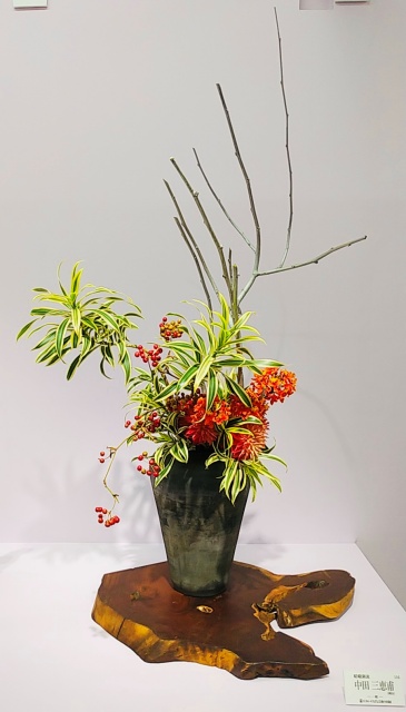 嵯峨御流の先生方の出品作品のお写真をいただきましたのでお借りして、後期はわたくしのスナップ写真でご紹介します。