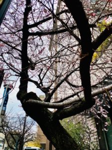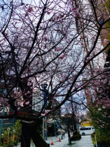 宸殿の南庭、左近の梅がほころび始めました。写真は2月11日に撮影したものです。