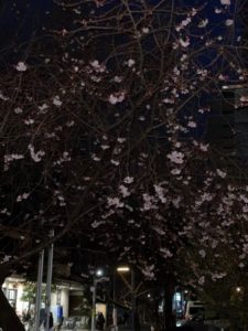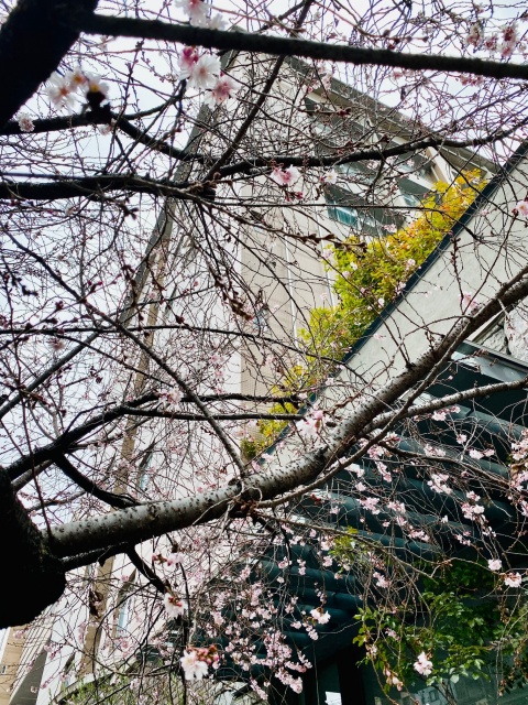 桜は自然の枝ぶりを生かしながら生花にしています。花留めは五徳。