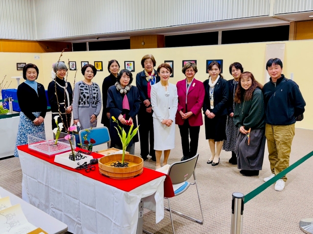 右京区民美術展に嵯峨美大生が会場に挿花しています