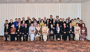 会場では、高円宮妃久子殿下にご挨拶をさせていただきました。妃殿下は、平成26年11月に嵯峨菊観賞の為大覚寺へ御成りになったおりの事を懐かしくお話下さいました。その折、御前で私共がデモンストレーションで嵯峨菊のいけばなをご覧いただいた時の事をお隣におられる絢子女王様にもお話し下さり、大変光栄な事でした。