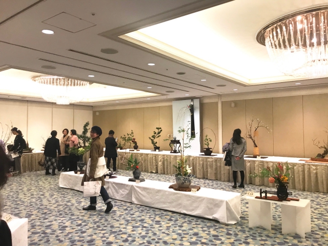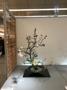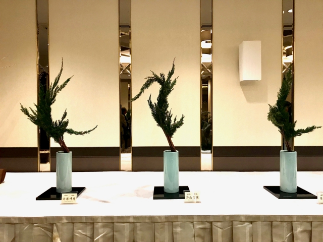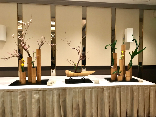 作品は、嵯峨御流の関東地区の9司所に毎年交代でもらい、今年は嵯峨御流華道公友会司所の皆様が挿花担当してくださいました。