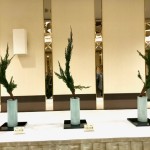 今年も、8月6日に、広島で花をいけさせていただきました。いけばなインターナショナル広島支部と、国境の無い花たち展実行委員会によるこの催しは、ジャンル・年齢・所属を超えて「平和を願う」というテーマのもと参加した人々のいけばな作品を展示される1日限りの花展です。