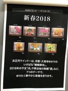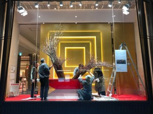 大阪うめだ阪急百貨店コンコースウィンドウに、2019迎春花を約100名のかたがたのご協力でいけております。期間は、12月27日から1月14日まで。