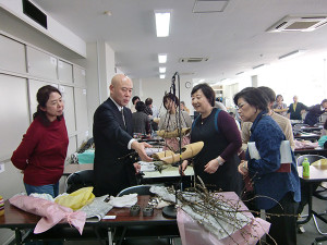 皆さん、普段いけることの少ない船花器への挿花ということで、熱心に取り組まれておりました。