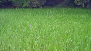 お写真と共に嬉しいお便りを下さった友人のお許しを得て、天然記念物のカキツバタの初花を掲載させていただきます。若緑の葉群れの中に、清楚で凛と咲く紫の花は、古の大宮人の心を虜にした事でしょう。