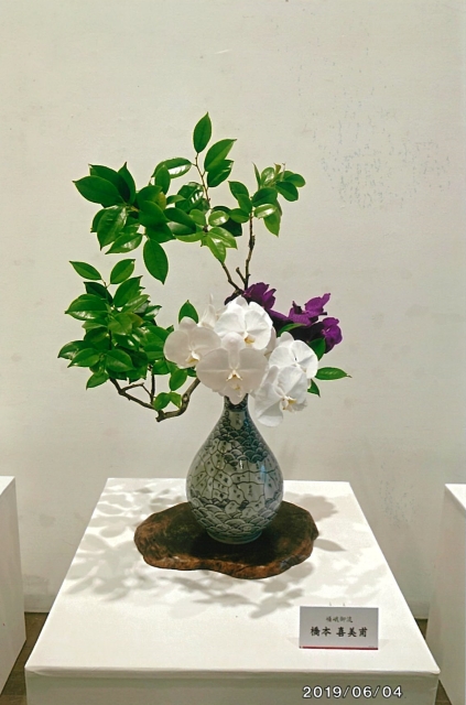 6月6~9日、福岡市のアクロス福岡で第49回福岡市華道展が開催されました。21流派の作品が展示され、当流は13名が出瓶しました。