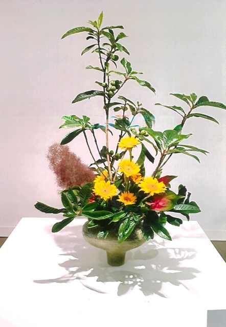 4月5日~7日、沖縄県国頭郡の大宜味村環境改善センターと芭蕉布会館で第16回おおぎみの工芸展「いぎみてぃぐま」が開催され、当流の當山美智甫師範がいけばなを挿花しました。