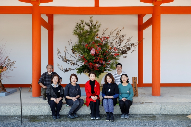 12月29日から1月5日まで、京都市のJR京都駅でジャパンスピリッツin京都が開催されました。嵯峨御流は当司所から垣花悦甫師範が参加し、新型コロナウイルス収束の願いを込めて日の出をイメージした作品を挿花しました。