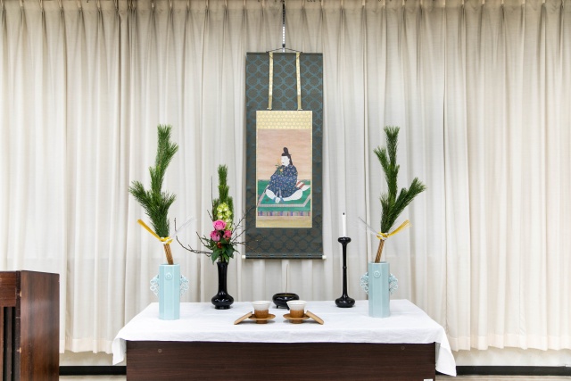 大阪府和泉市の和泉市コミュニティーセンターで2月13日、司所特別研究会を開催しました。第1部の新師範授与式では、嵯峨天皇の御尊影を拝し、若松の生花一対を献華。献茶の儀に続いて立川紗智甫司所長(当時)が親示を代読して、2人の新師範に許状と指南札を授与しました。第2部の特別研究会では、西村強甫華道芸術学院長(当時)を講師に迎え、「宝器七種(草花器)にいける」と題して竹器や梅についての講義の後、里山から切り出した早春の梅を用いた見事なデモンストレーションが繰り広げられ、有意義な一日となりました。
