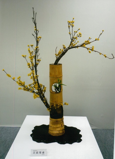 大津市の平和堂和迩店2階「わに平ギャラリー都千本」で3月4日から6日までの3日間、榎孝甫社中展が開催されました。1か月前から練習を重ね、全員が新しい花態に挑戦し、主宰者も葉蘭100枚の数いけを展示。県内外から大勢の参観があり、小さな華展ながら和やかな社中展になりました。