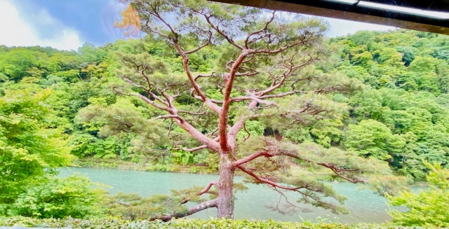 もと嵐亭だったお屋敷は、今は「翠嵐」というホテルになっています。「翠嵐」の意味は、山は緑で吹く風は香しく麗しいという意味の漢語的表現、樹々が青々と茂る様子、ということですから、この敷地内の茶寮「八翠」から一目で見おろせる大堰川の水の流れを含めてその名の通り!絶景を独り占めできる場所でもあります。