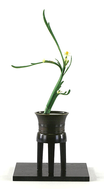 葉組物の代表的花材である水仙を用い、葉の組み方や花の扱い方を『すいせん百選』をテキストに学びます。