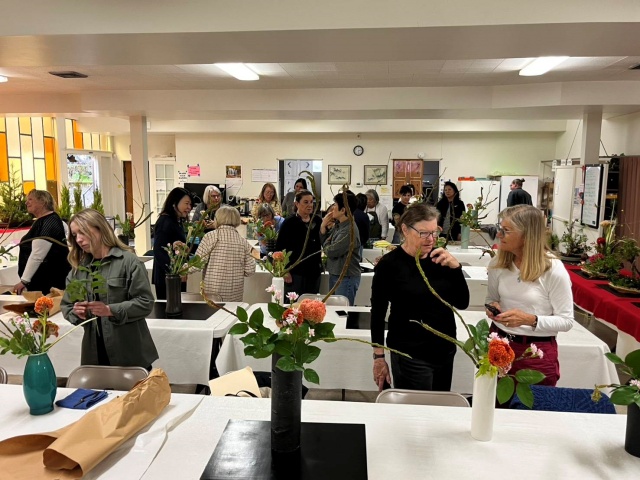 デモンストレーションは、深山、荘厳華、瓶花、生花(八葉蓮)、きざはし、最後にオレゴンを代表する山🗻マウントフットを錦木で富士流しの応用で。