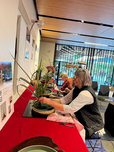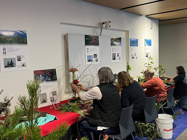 12日(日)午前中、3つ目のワークショップで、北米司所会員を対象にした生花。