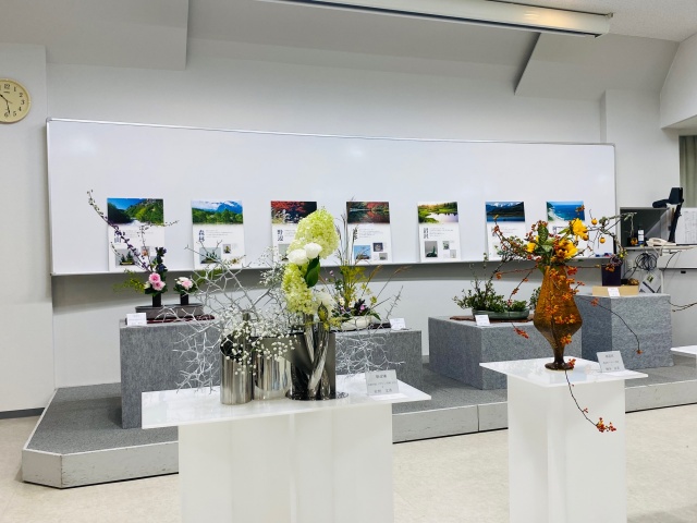 嵐芸祭での、嵯峨御流華道授業履修生による『学生華道展』