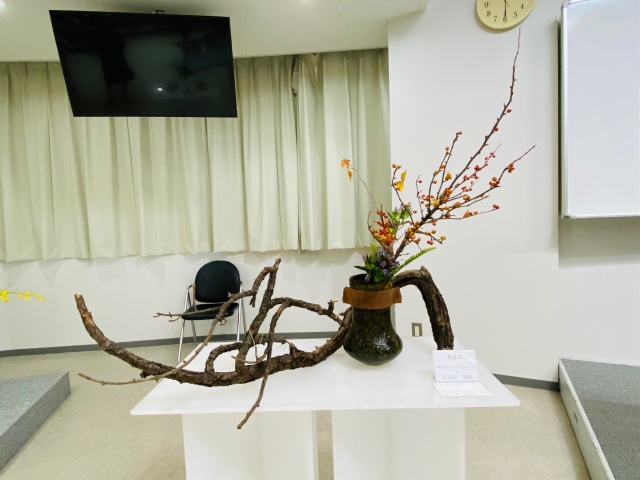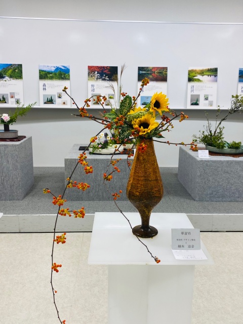 この華展では色彩の取り合わせなど、それぞれとてもよく考えていけているなと感心させられることがいっぱいあり、全体としても勢いのある、素敵な華展でした。