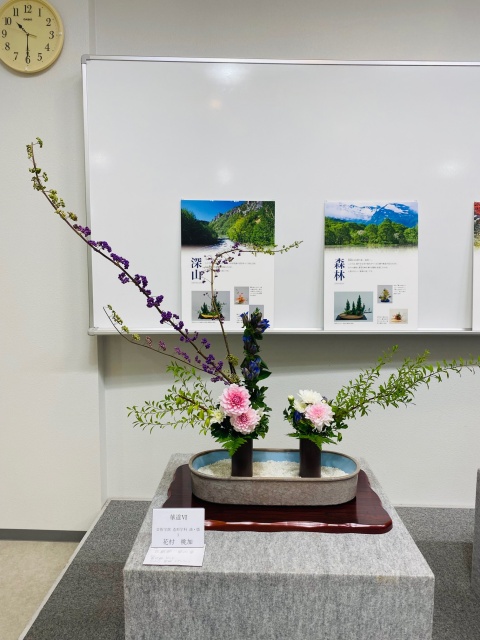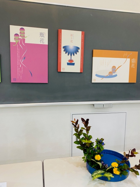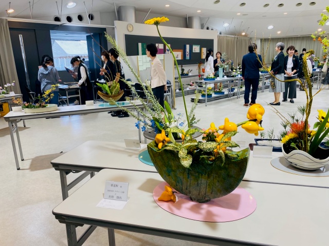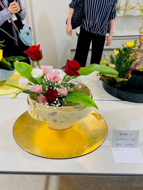 嵯峨美術大学・嵯峨美術短期大学 2025年の学園祭「嵐芸祭」が10月18日・19日両日開催され、第四演習室において、選択科目で嵯峨御流華道を学ぶ学生による「学生華道展」を拝見しました。
