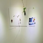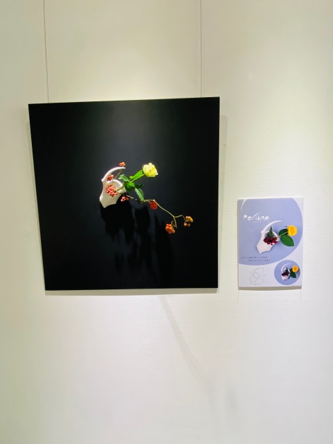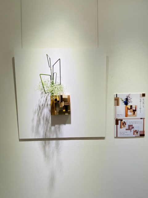 これらの7作品は、1階に展示された、プロダクトデザインの展示です。華道講師とコラボで、掛け花器を創作されたもの。