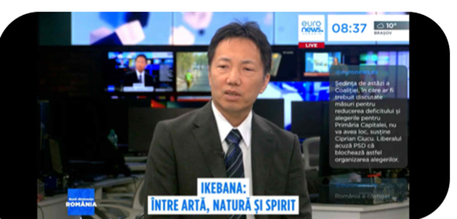 いけばなインターナショナルのルーマニア支部からの招聘を受けられて、10月13日に井上治先生がご講演をなさるとのご連絡をいただきました。その日の朝にルーマニアのテレビにも出演されたようです。