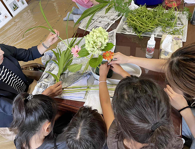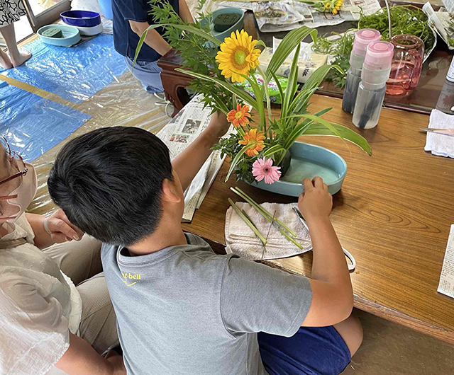 小学生とその保護者を対象として開催し、親子で協力して作品を仕上げる様子は微笑ましく、和気あいあいとしたものでした。日本の伝統文化に触れていただく良い機会となりました。参加者からは「子供達が真剣に花に向かう姿に感心した。」、「思っていたよりも難しくなく、楽しかった。」等の声をいただきました。