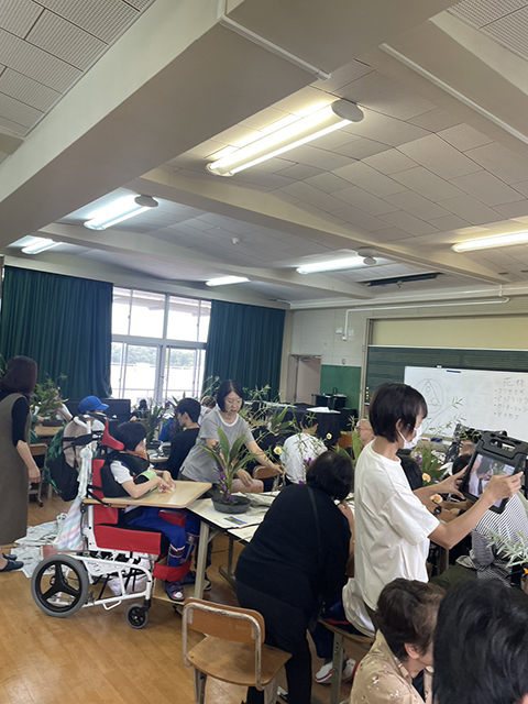 特別支援学校ということで、車いすや自分ではさみを使うことが難しい生徒もいらっしゃいましたが、先生方の補助もあり、先生と意思疎通してお花をいけておられました。10日の方が少し難しい花材であったかもしれませんが、それぞれに考えて工夫していけておられたのでよかったです。皆さんいけばな体験は初めてで、わくわくされていたのがよくわかり、開催してよかったと思いました。
