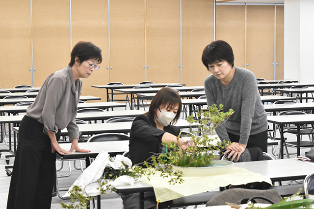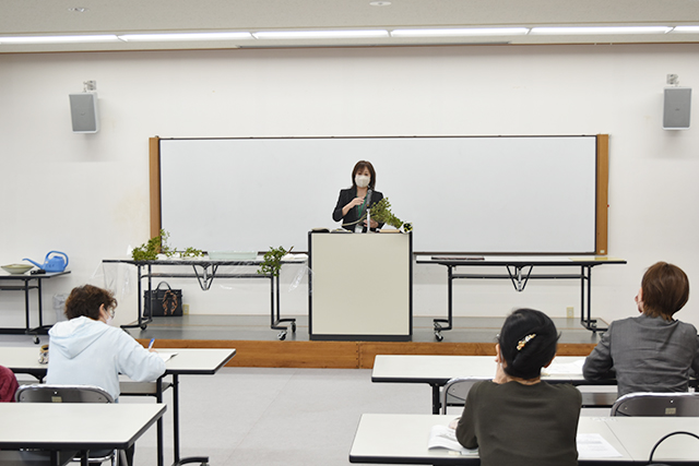今回は「池水の景」をテーマに、内橋人美主任教授・いけばな文化綜合研究所副所長が講師を担当しました。