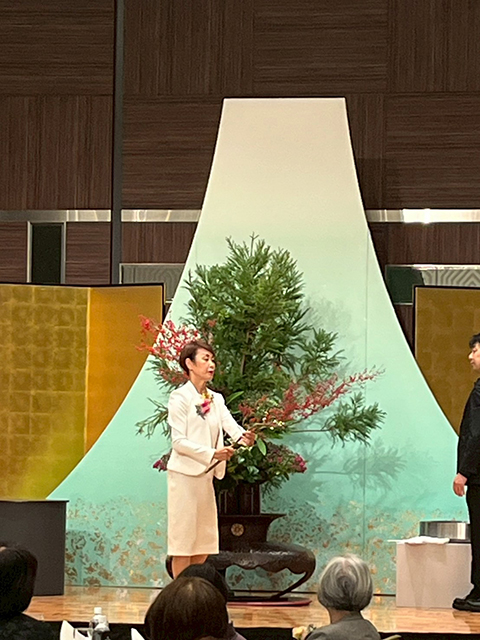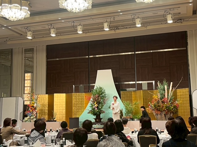 10月10日。ホテルニューオータニ大阪「鳳凰の間」で開催された10月例会に招聘を受け、約1時間のデモンストレーションをいたしました。御来賓 I.I.世界大会委員長 臼井信子様、大本山大覚寺宗務総長 堤大恵様、他の方々。
