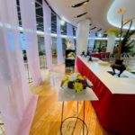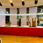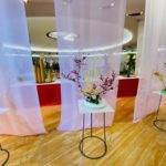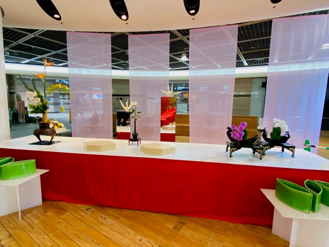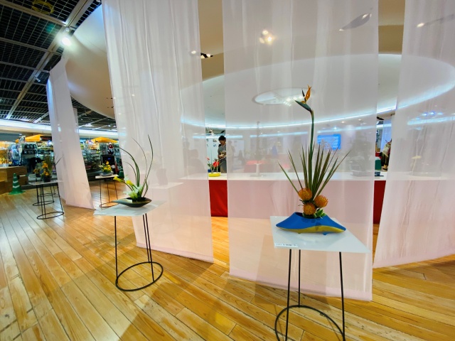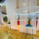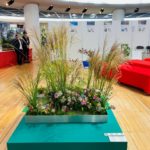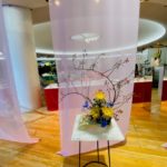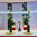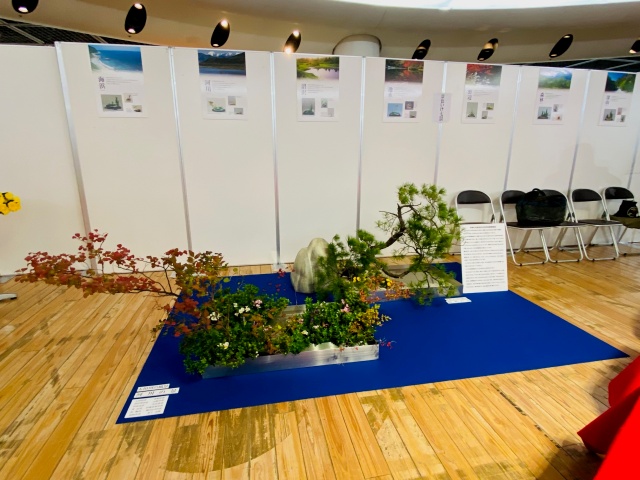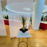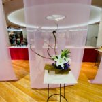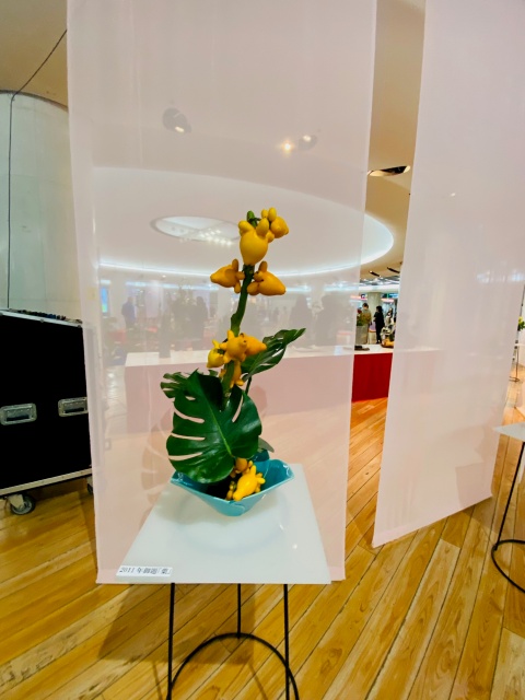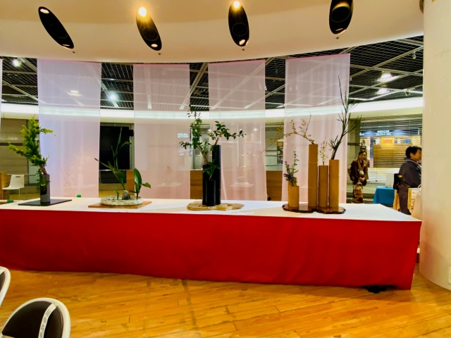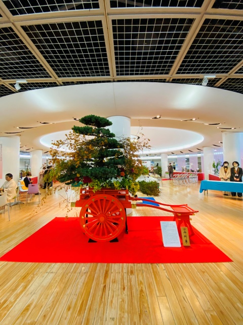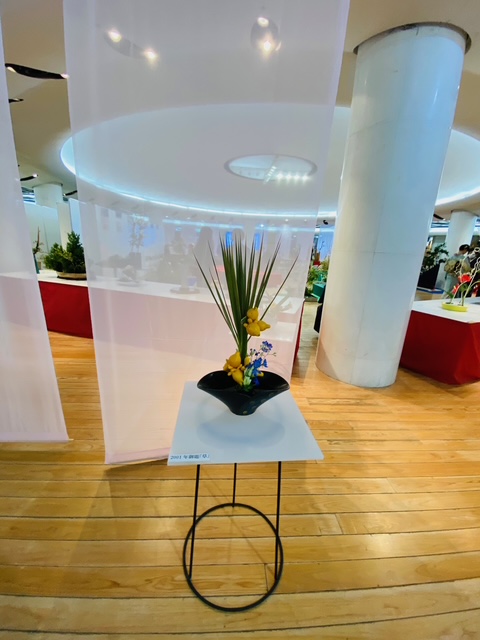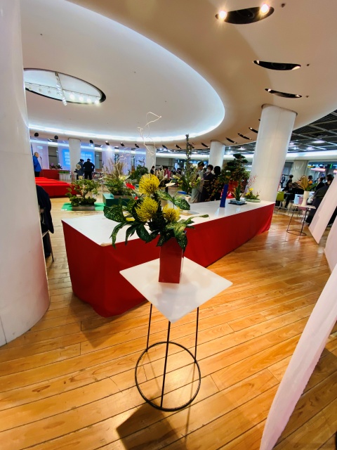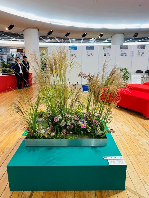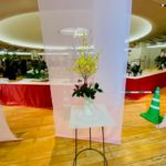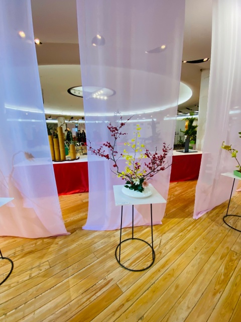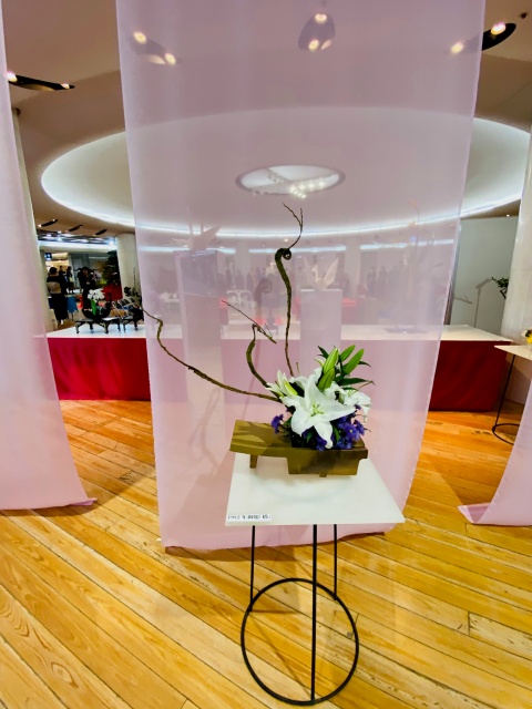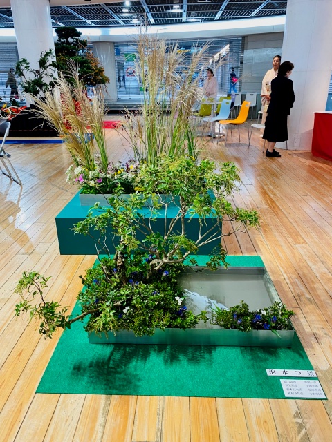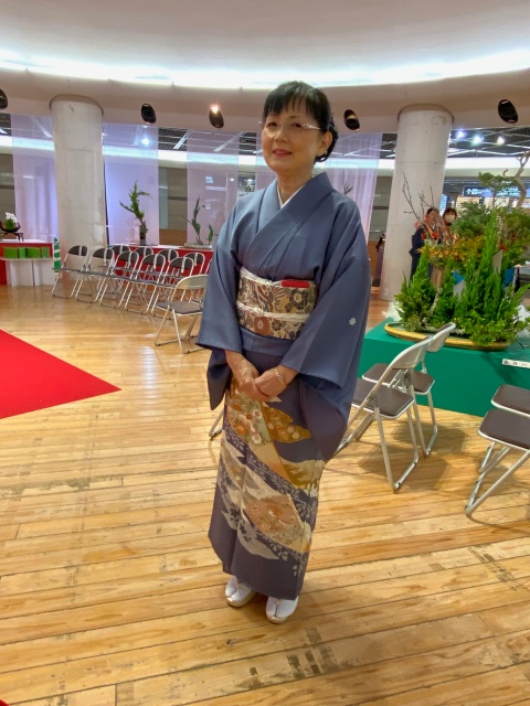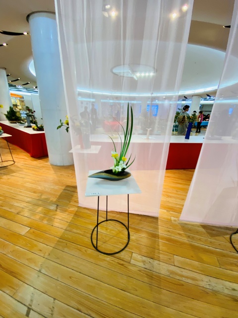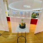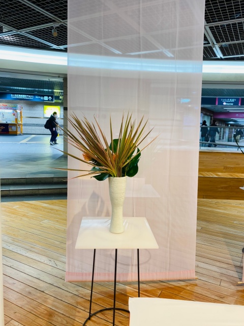 10月24日、25日に広島芸南司所の創立55周年記念華展が、人々が往来する地下繁華街の中央広場でたくさんの方々の注目を集める場所で開催され、開始にあたり被爆80年平和祈念セレモニーが執り行われました。平和記念公園の方へ向かって献花一対を捧げられた後、理事長、華務長挨拶、オペラ歌手山岸玲音氏の歌唱、セレモニー参列者による献花。