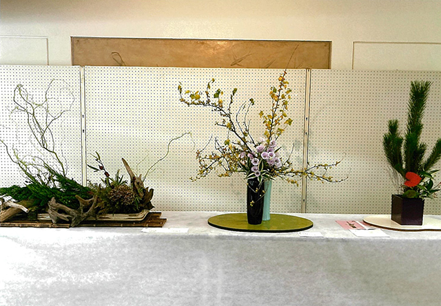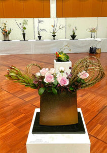 舞鶴司所 80ふぇす舞鶴市文化協会創立80周年式典・令和7年度舞鶴市総合文化祭(舞鶴市総合文化会館) 2025.11.08 | いけばな通信 令和7年10月3日(金)~5日(日)の3日間、京都府舞鶴市の総合文化会館において、80ふぇす舞鶴市文化協会創立80周年式典・令和7年度舞鶴市総合文化祭が開催されました。 展示部門(いけ花)は総合文化会館大ホールのホワイエと小ホールで発表いたしました。いけ花以外の展示もあり、多くの来場者で好評を博しました。 司所長/田中美奈甫