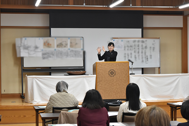 今回は「高雄の景」をテーマに、青野直甫特任教授・華道企画推進室室長が講師を担当しました。