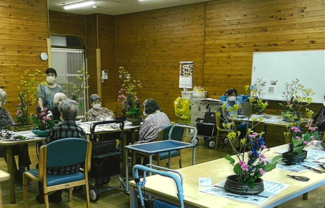 午前中は蕃山荘、午後からは正楽寺に場所を移しての開催となりました。花態は立盛体で、リンドウ、スプレーカーネーション等を使用しました。皆さん楽しそうに、笑顔でいけていらっしゃいました。参加者からは「楽しいひとときを過ごすことができた。」、「また参加したい。」等の声をいただきました。