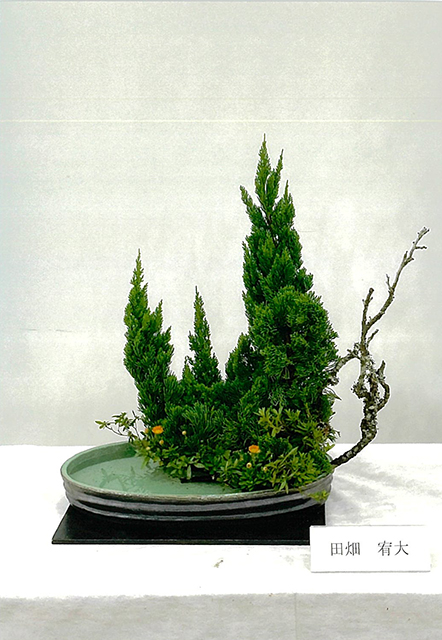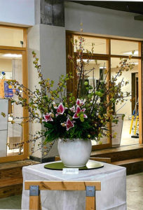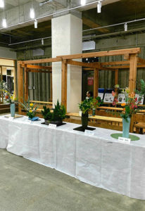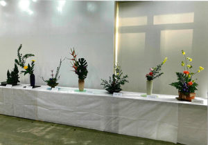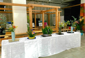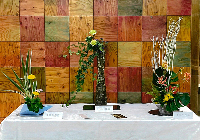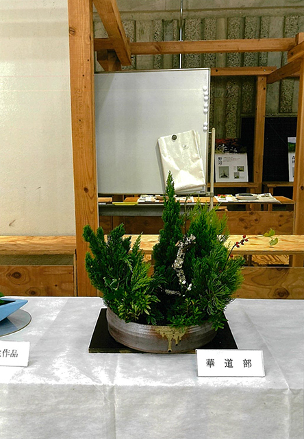 田中美奈甫師範の指導する華道部は、4月から女子学生4名を加え今年も作品発表をしました。それぞれのお花を前に、日頃のお稽古の成果を発揮いたしました。多くの来場者の方々に喜んでいただくことができました。