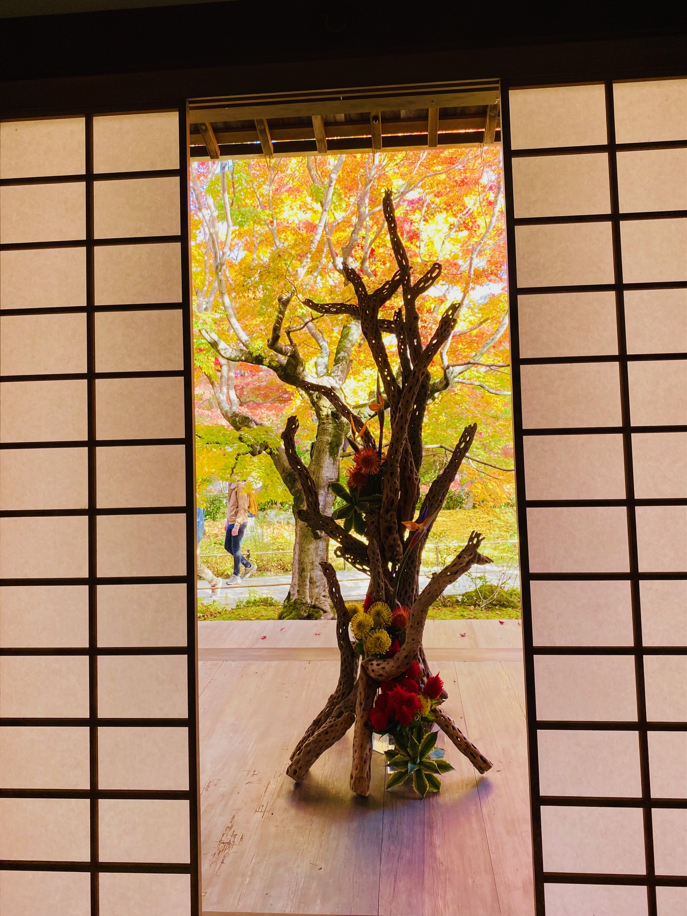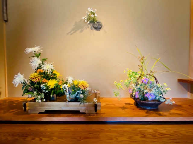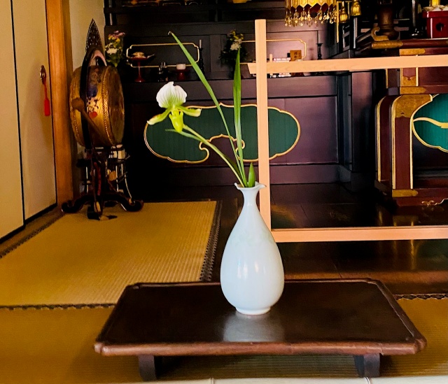 本堂と書院には、植物を愛する御上人様みずからいけられた、いけばな作品が沢山飾られています。
