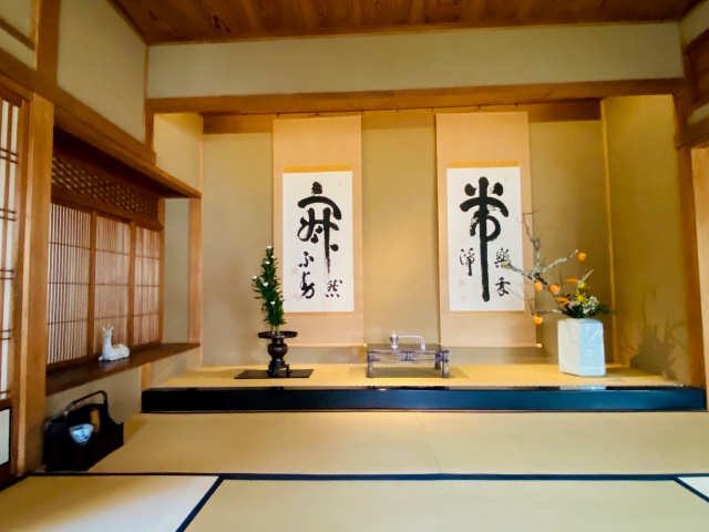 そして、奥の書院は菊尽しの飾りの中で、貴重な菊の御紋の食器も拝見できます。