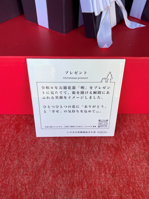 11月29日から12月5日まで、大覚寺供待において、嵯峨御流青年部<SAGAS>の皆さんが、クリスマスをテーマにいけばな展を開催されています。
