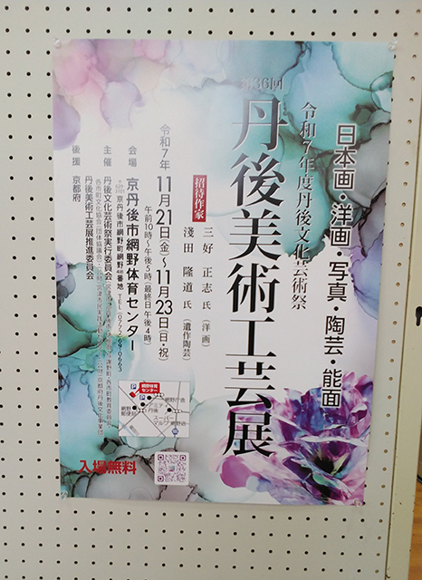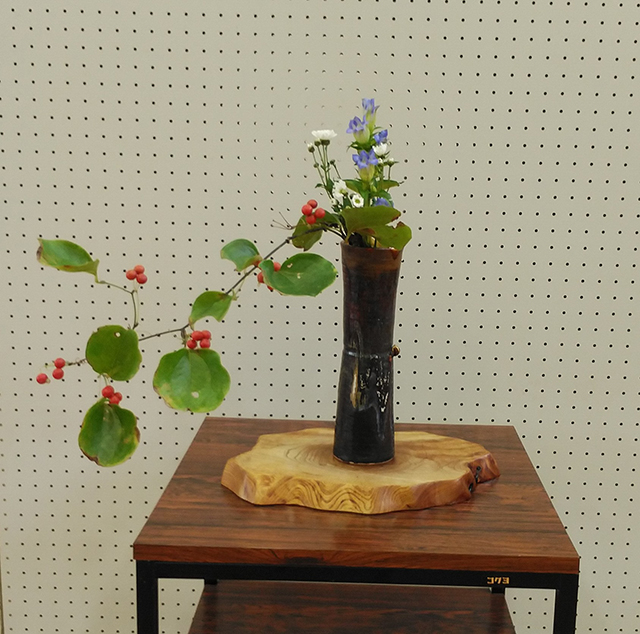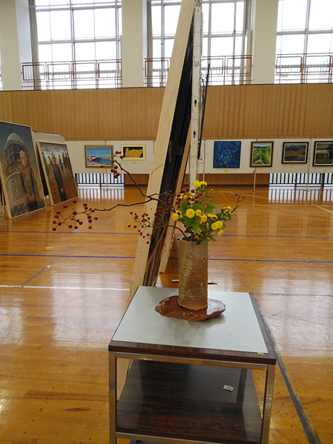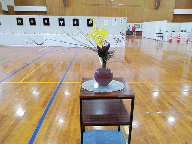 久美浜司所 令和7年度丹後文化芸術祭 第36回丹後美術工芸展(京丹後市網野体育センター) 2025.12.16 | いけばな通信 11月21~23日、京都府京丹後市の網野体育センターで開催された「令和7年度丹後文化芸術祭 第36回丹後美術工芸展」にて、故浅田隆道師の遺作花器に挿花の協力を藤村美也甫、吉谷和甫、岡田光甫の3名で行いました。 司所長/岡田光甫