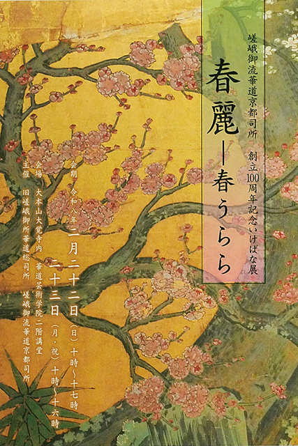 京都司所 司所創立100周年記念いけばな展「春麗ー春うらら」 2025.12.18 | 講座・イベント情報 日 時:令和8年2月22日(日)10:00~17:00 2月23日(月・祝)10:00~16:00 会 場:大本山大覚寺内 華道芸術学院二階講堂 主 催:旧嵯峨御所華道総司所・嵯峨御流華道京都司所