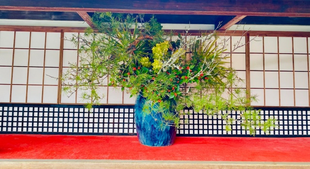 境内は僧侶の方々により美しく整えられ、鏡餅がお玄関に供えられ、御門には根引松の門松が結えられて、夕刻までに晴れの日を迎える準備が整いました。