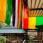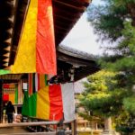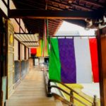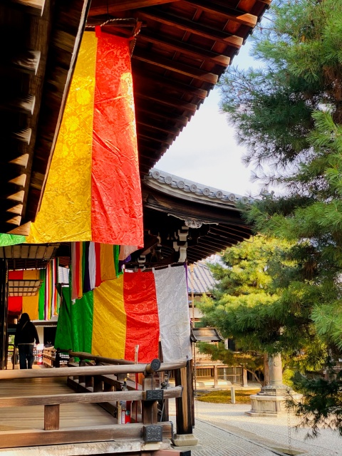 五色幕が風に靡き、晴々とした大覚寺です。