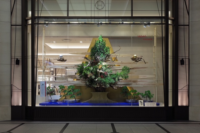 うめだ阪急コンコースウィンドー迎春花は1月12日までです。100人で制作しました。