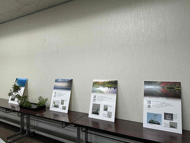 午前中に会場設営、景色いけ(森林の景)、参考花(右盛体、立盛体)の挿花をし、午後から体験を開始しました。参加者にいける花態を選んでもらったところ、右盛体を希望する人が多くなりました。終了後、同日に開催されていた兵庫県いけばな展を鑑賞し、嵯峨御流の本を購入された参加者がいたことを聞き、開催してよかったと実感しました。