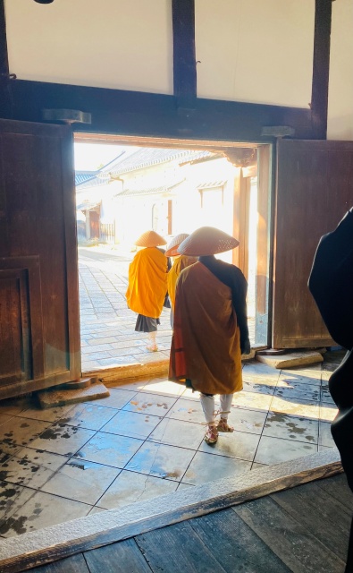 季節は大寒。もっとも寒さ厳しい季節です。1月23日、24日は伝灯学院生の方が寒行の托鉢に出られる日ですので、明智陣屋のお玄関にて、職員の皆様と共にお見送りをさせていただきました。