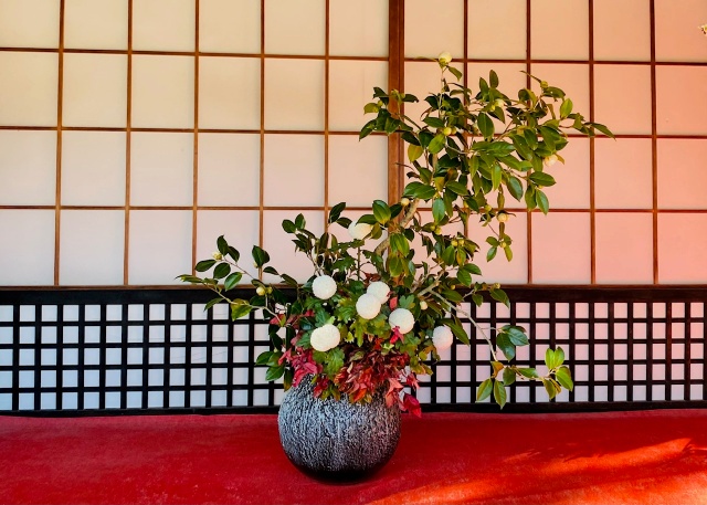 供待にいけられたお正月花の花は、梅花も咲き誇り今が最高に美しいです。