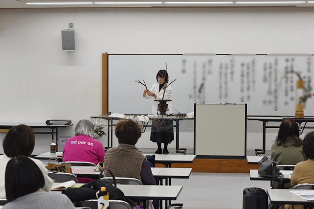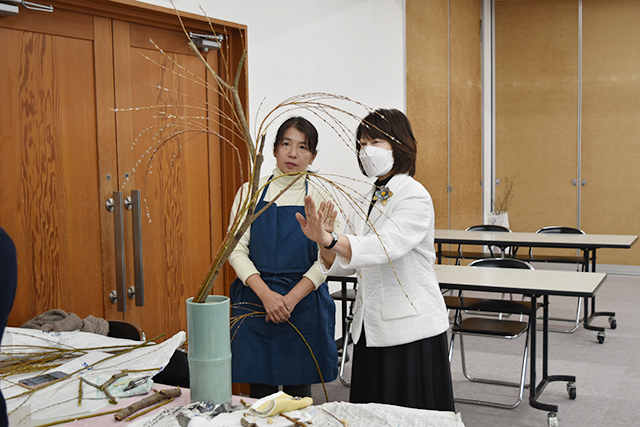 今回は「糸柳長閑の景色」をテーマに、澤井尚甫華道芸術学院副学院長・主任教授が講師を務めました。