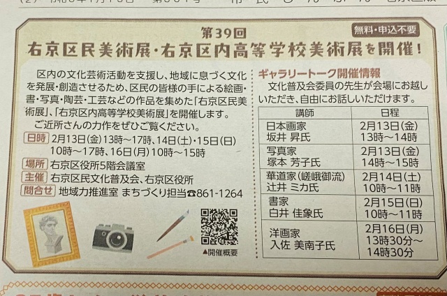 右京区民美術展が、今年も右京区役所(サンサ右京)内5階で開催されます。