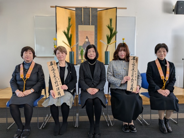 1月18日、岡山司所に於いて、新春恒例の初いけ会を行いました。新師範伝授式に続いて、柴田洋秀先生による花手前の講義を受けました。