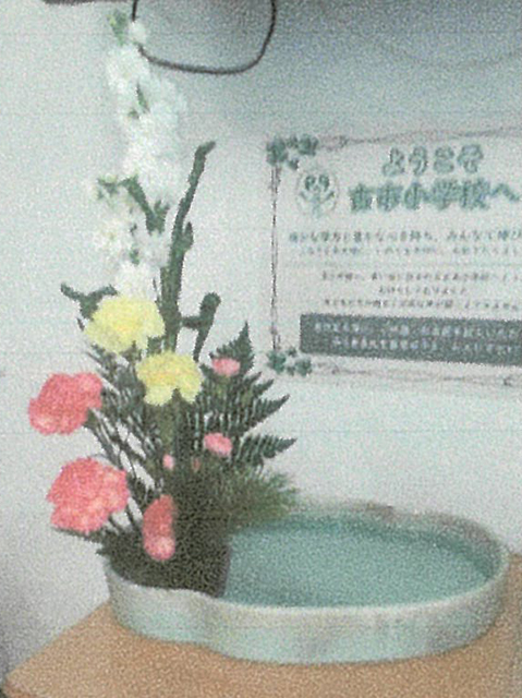 古市小学校では平成17年から20年ほど、クラブ活動の和の伝統クラブで嵯峨御流体験を指導させていただいています。とても嬉しそうに、自分の作品に名前をつけてくれている子もあり、和やかな雰囲気でした。