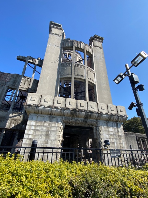負の世界遺産・原爆ドームのもとの建物は、チェコ人の建築家ヤン・レツルの設計により、大正4年(1915年)広島県物産陳列館として建てられた、とてもモダンで素敵な建物だということが、本安川に向かって建てられている正面玄関方面から見るとよくわかります。