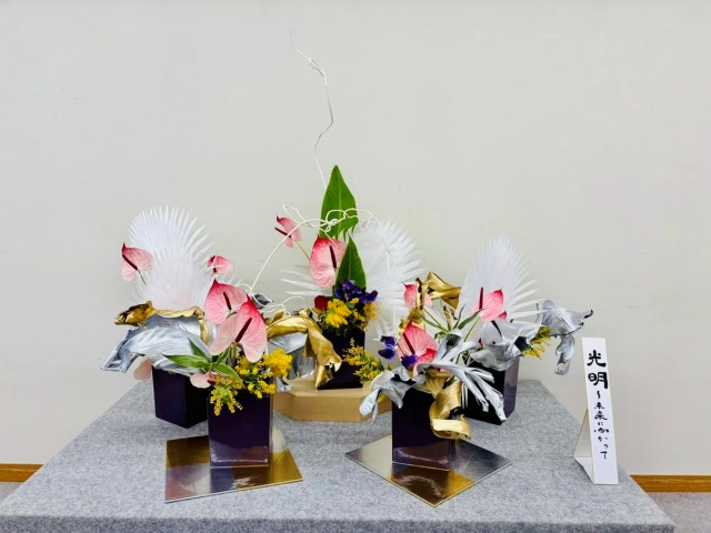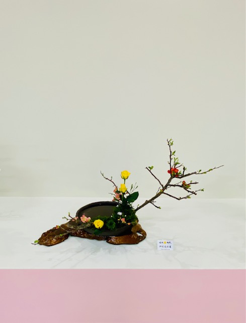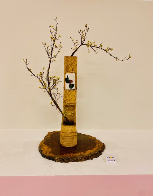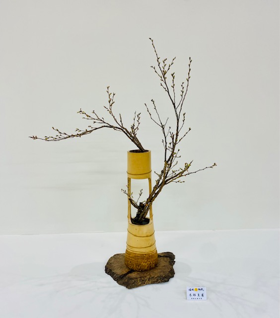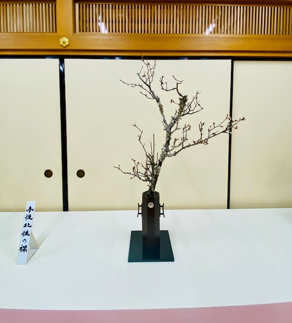 嵯峨御流京都司所は昭和3年に設立され、2月22日に大覚寺内華道芸術学院2階で100周年記念華展が開催されました。開会式において、村岡雅甫司所長のご挨拶の中では、先輩方から受け継いだ花への想いを、心を込めて表現する。先人が切磋琢磨して来られた技を、100年の節目に立ち会えた私達が発表できるというその重積に身が引き締まる思いだとおっしゃり、先人のお導きに感謝し、今を生きる私達が今の時代にしかできない花会を心を合わせて開催する、と力強いお言葉で締めくくられ、爽やかで清々しい開幕でございました。